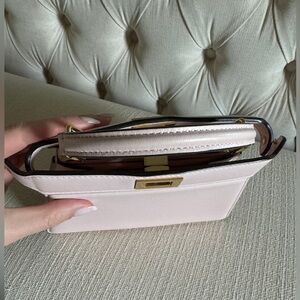Confetti (light pink) Fendi Petite Peekaboo purchased from Neiman Marcus Chicago in 2022. Don’t sleep on this because it was only used for pictures once and is in near perfect condition. There’s also a detachable adjustable strap that was never used. This is a full set which means it comes with the shopping bag, box, dust bag, 2 Fendi bag raincoats, and original receipt.