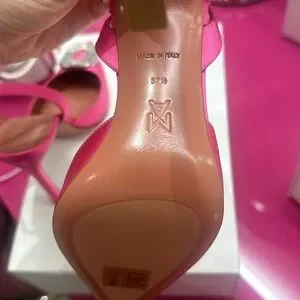 Those around you will turn green with envy when you wear the Camelia slingback pumps from Amina Muaddi. Finished in an elegant pink shade, this pair features a shiny baguette-shaped embellishment for added elegance.