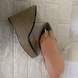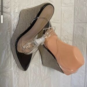 MISS LOLA " Clear and Woven Wedges Platform Sandals 8 Pointed Toe