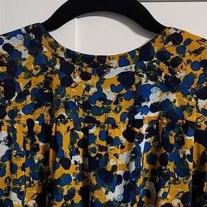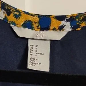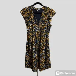 H&M Tunic Mini Dress Sz 8 Multi Abstract Flutter Sleeve V-Neck Pintucked Flowy