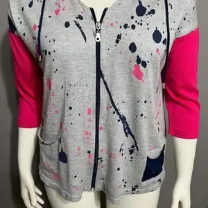 SOLD❌❌❌ Angel Gray Paint Splatter With Pink Sleeve Zip Up Cardigan Sz-Medium