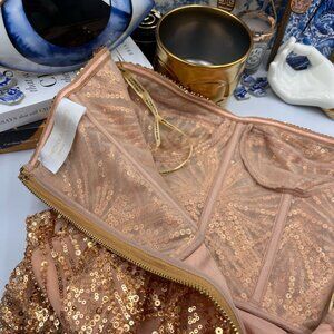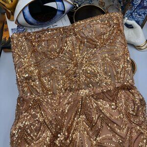Please note: the beading and sequining is very delicate and there are inevitably a few places where the beading is not perfect. There is really no one area where there are imperfections (see photo 14); just a few places throughout the dress missing a sequin or two.