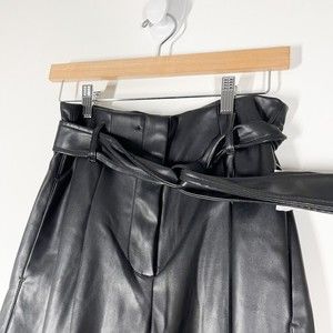 Vero Moda Honey Lilja Coated City Short Black High Waist Wide Leg Size Small NEW