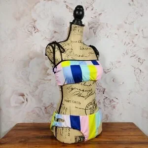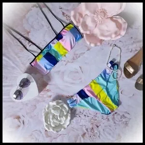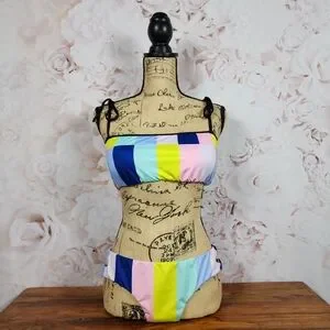 XL The Bikini Lab Color Block Shoulder Tie Bikini Set