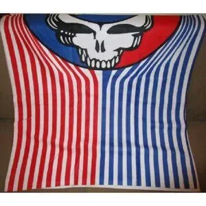 The Grateful Dead collector / enthusiast you know will be happy to receive this brand new and well designed 'Red, White and Blue Steal Your Face' bath or beach towel. The design includes a large Steal Your Face logo in the center with a red and blue cabana vertically striped pattern as the background. The mix of vibrant colors in this towel is sure to catch some eyes at the pool or beach any time of year. Take it to the beach, the lake or use it as a bath towel. Be sure to see all of the pictures in our listing and please check our other Grateful Dead items. We know you will love your new beach towel. Thanks for reading.