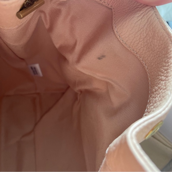 Has sign of use on metal at the bottom and has stain inside the bag as shown