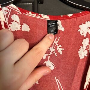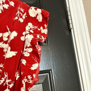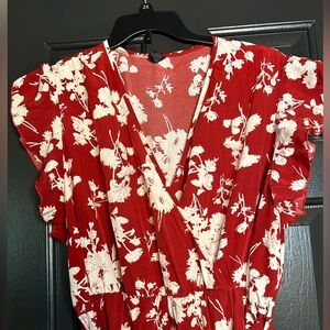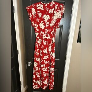SHEIN Red and Cream Floral Print Butterfly Sleeve Belted Maxi Dress