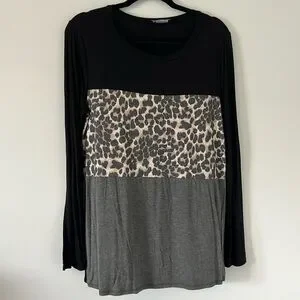 Long sleeve top with leopard print center
