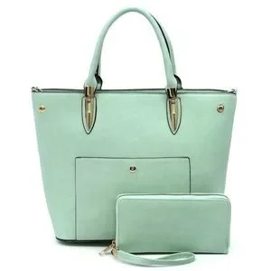 Women's Green Fashion Top Handle Satchel Work Tote Bags 2pcs Set