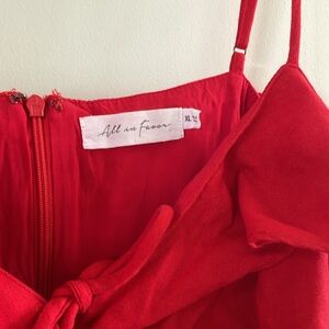 Red linen dress with ruffle and tie