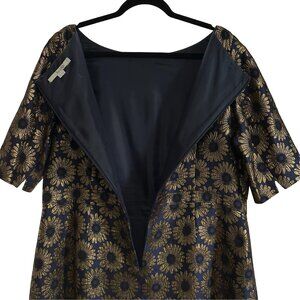 Boden Beatrice Navy Blue and Gold Floral Brocade Short Sleeve A Line Dress