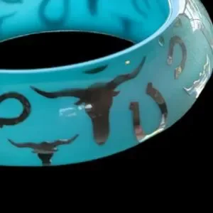 Blue Southwestern Bangle bracelet with lucky horseshoes and cattle X1