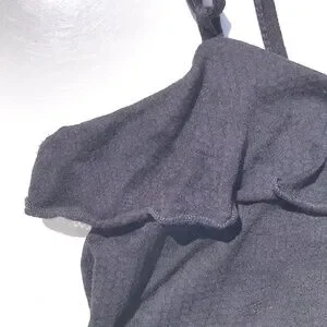 ruffle around top, V cut-in in center of back.