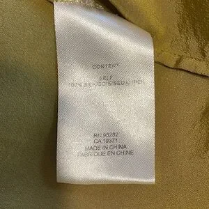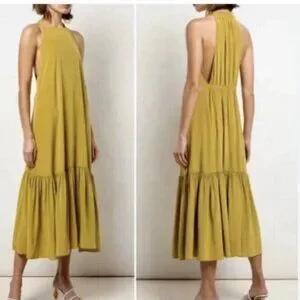 Tibi 100% Silk Eco Halter Drop Waist Ruched Midi Dress Tan Ochre Green size 4