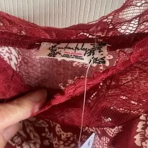 Sheer panels of lace bare tantalizing peeks of skin in a breezy trapeze nightgown patterned with a paisley-inspired floral print and cut with an asymmetric hem.