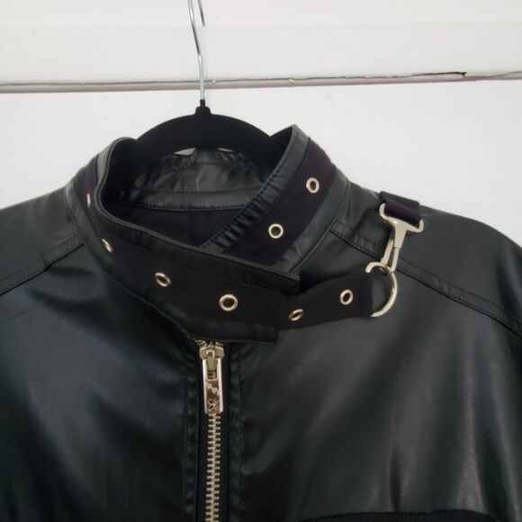 This vintage TRIPP NYC trench coat jacket is a must-have for any fashion-forward individual who loves the punk, horror, bondage, gothic, or Halloween themes. The jacket features a solid black color with strap, buckle, and zipper accents that add a touch of edginess to any outfit. The jacket is made of polyvinylchloride material and has a regular fit, making it comfortable to wear for any occasion, whether it's a party or a cocktail event.