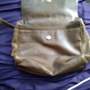 This pre-loved, vintage, coated canvas, non-leather (think vegan) Bottega Veneta bag features an outer front pocket and a zippered internal pocket. This item is well-worn - there are faded areas on the exterior but otherwise, it's in good, functional condition. Includes original dust bag. Note: This bag is several decades old and pre-dates serial numbers. Measurements: 13"x11".