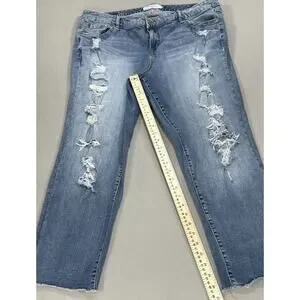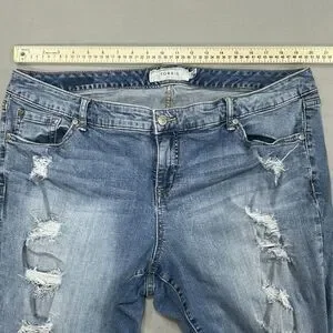 Torrid Jeans Women's 20 Blue Denim Distressed Stretch Raw Hem Measures 39x26