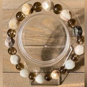 B32 ❤️ 7.25" Amazonite & Smokey Quartz Handmade Gemstone Crystal Stone Bracelet