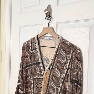 tags: bohemian boutique fashion top cardigan wrap top 70s 60s hippie disco fashion groovy top club wear paisley print shiny aesthetic pinterest it girl party girl outfit inspo summer spring insta baddie halloween costume