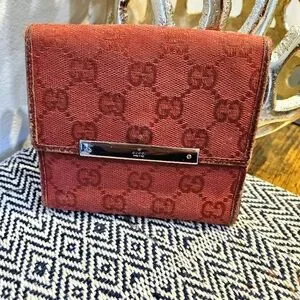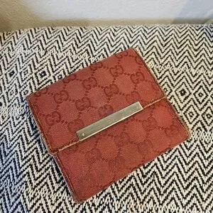 Orange Gucci Wallet is older with some signs of fading. condition is good. Great project Wallet for someone who wanted to dye it. No peeling or stickiness.