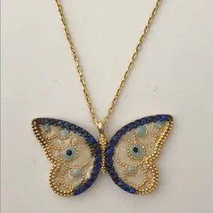 925 Silver butterfly necklace white blue evileye 18k yellow gold plated