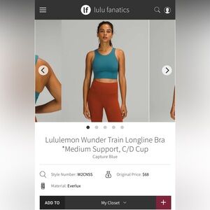Lululemon Wunder Train Longline Bra Medium Support C/D Cup in Capture Blue