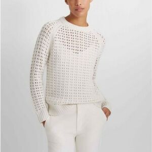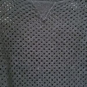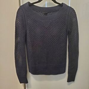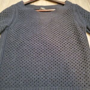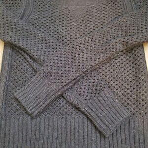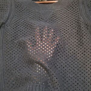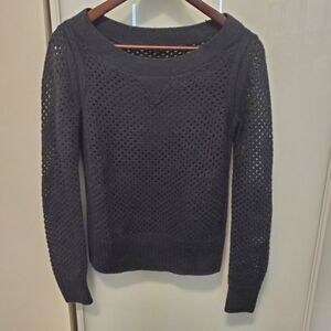 Condition: 10/10. Barely worn. No pilling. Beautiful wool open-stitch knit sweater. Boat neck. Deep navy blue (close to black - see last photo for better reference).