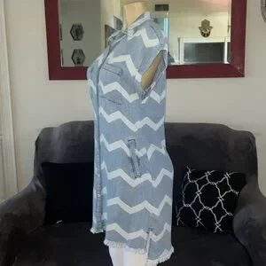 At Billy T, we care about the environment as much as we care about making the best clothing possible. That’s why we use Lyocell fabric in over 90% of our line. Lyocell is a renewable cellulose fiber - breathable, absorbs moisture, and is soft on the skin. Feels good, looks great, and good for the planet. That’s the BT way. Boldly cute, or cutely bold? We think both! The Lila Shirtdress is here, only from Billy T—with button-front, open sleeves, and adorable frayed hem. Color Chevron size Small