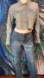 Size large, raw hem, Riveted studs and spikes short cropped cotton blend long sleeve button front beautifully detailed studs and spikes. Jacket has some weight to it so you know it was made well. Distressing, spikes and studs on sleeves without working button too front pockets.