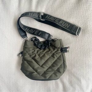 Zara Quilted Big Chain Nylon Bucket Bag | Olive Green