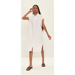 Frank & Oak Midi Linen Commuter Dress Button Up Down Oversized Shirt Relaxed Fit