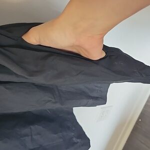 Cute black pinafore style cotton adjustable strap (tie in the back) has pockets too! Would need to wear a shirt or something on top underneath as it's open on the sides!