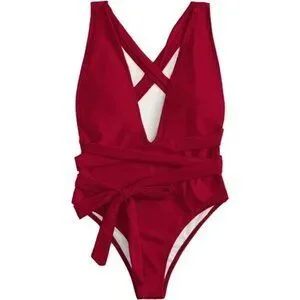 Sexy Tie Criss Cross Plunge One Piece High Cut Brazilian Swimsuit 3XL
