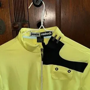 I wore this once for a golf championship- beautiful bright yellow with black accent and buckle detail.mint shape !!!