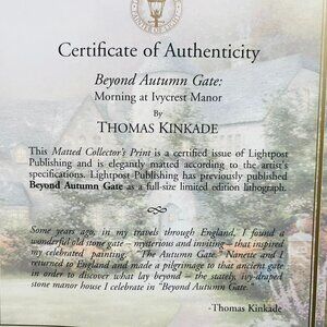 Print of "Beyond Autumn Gate: Morning at Ivycrest Manor" by Renowned American Artist Thomas Kinkade! 🎨Pre-Owned