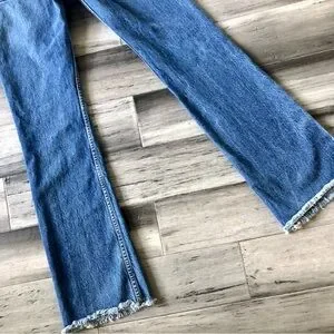 Ultra low rise flare leg jeans with frayed edges