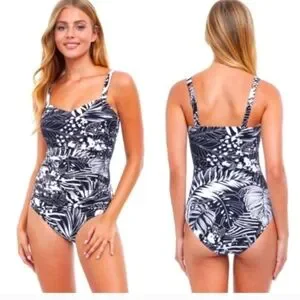 Gottex black and white tropical one piece swimsuit