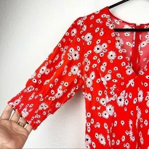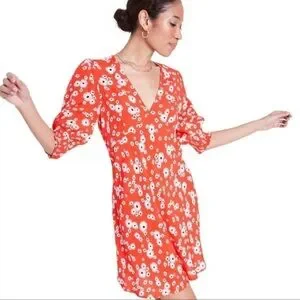 RIXO x Target Red Ditzy Daisy Floral Puff Sleeve Mini Dress, Size 2