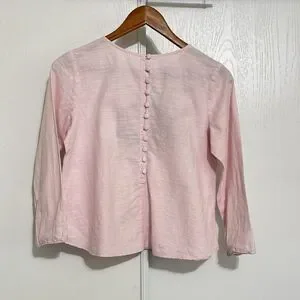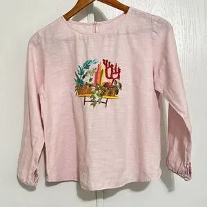 Girls Pink Hand Made Embroidered Long Sleeve Shirt Floral Plants Sz XL-XXL