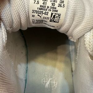 White puma women’s Carina L sneaker size 10. A few imperfections that are shown in the photos. Overall a very comfy shoe!