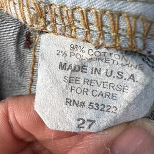 David Kahn Women's Nikki Flare Denim Jeans. Blue in color. Medium denim wash. Tagged size 27 (4). Made in the USA with a unique factory distressing and wash. Functional zipper and a moderate flare. In preowned condition with minimal signs of wear.