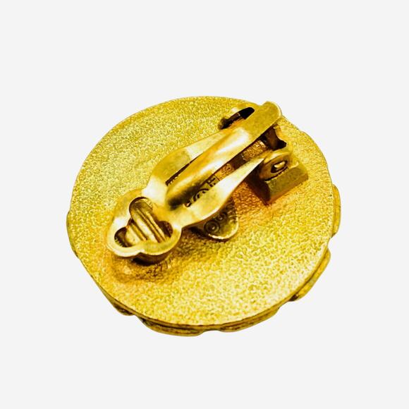 Vintage 24k gold-plated black and gold Chanel Clip-on Earrings from 1995.
