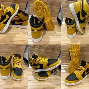 Size 6y Jordan 1 mid “Taxi” size 6y black and yellow colorway. No box. Shoelace ends are missing plastic. Will need new shoelaces. Lacelab.com has what you need. Easy restoration, just need to clear some projects