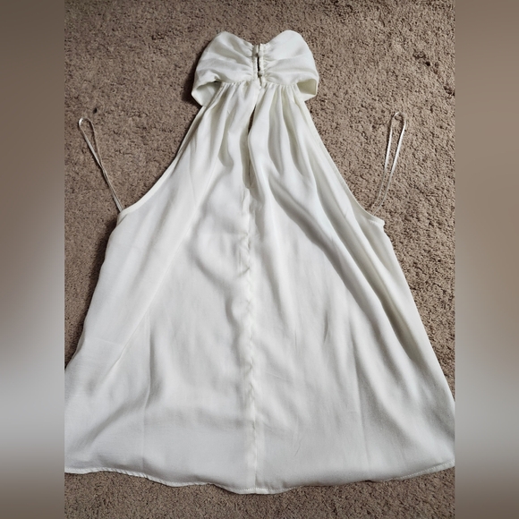 This halter blouse has minimal stretch with button claps on the neck.