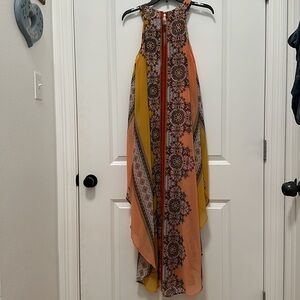 Versona printed flowy maxi dress with sheer overlay and matching print knee length slip underneath, beautiful colors, great condition, only worn once.