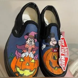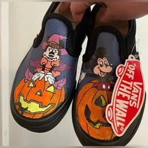 Handpainted with acrylic paint and a fabric mixer on children’s size 12 black canvas vans!
