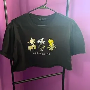 Forever 21 Blossoming Floral Print Black Crop Top, size large