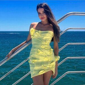 ZIMMERMANN Matchmaker strapless appliquéd linen mini dress US 4