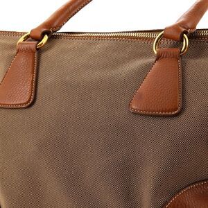 Prada Logo Convertible Zip Satchel Canvas with Leather Large Brown
